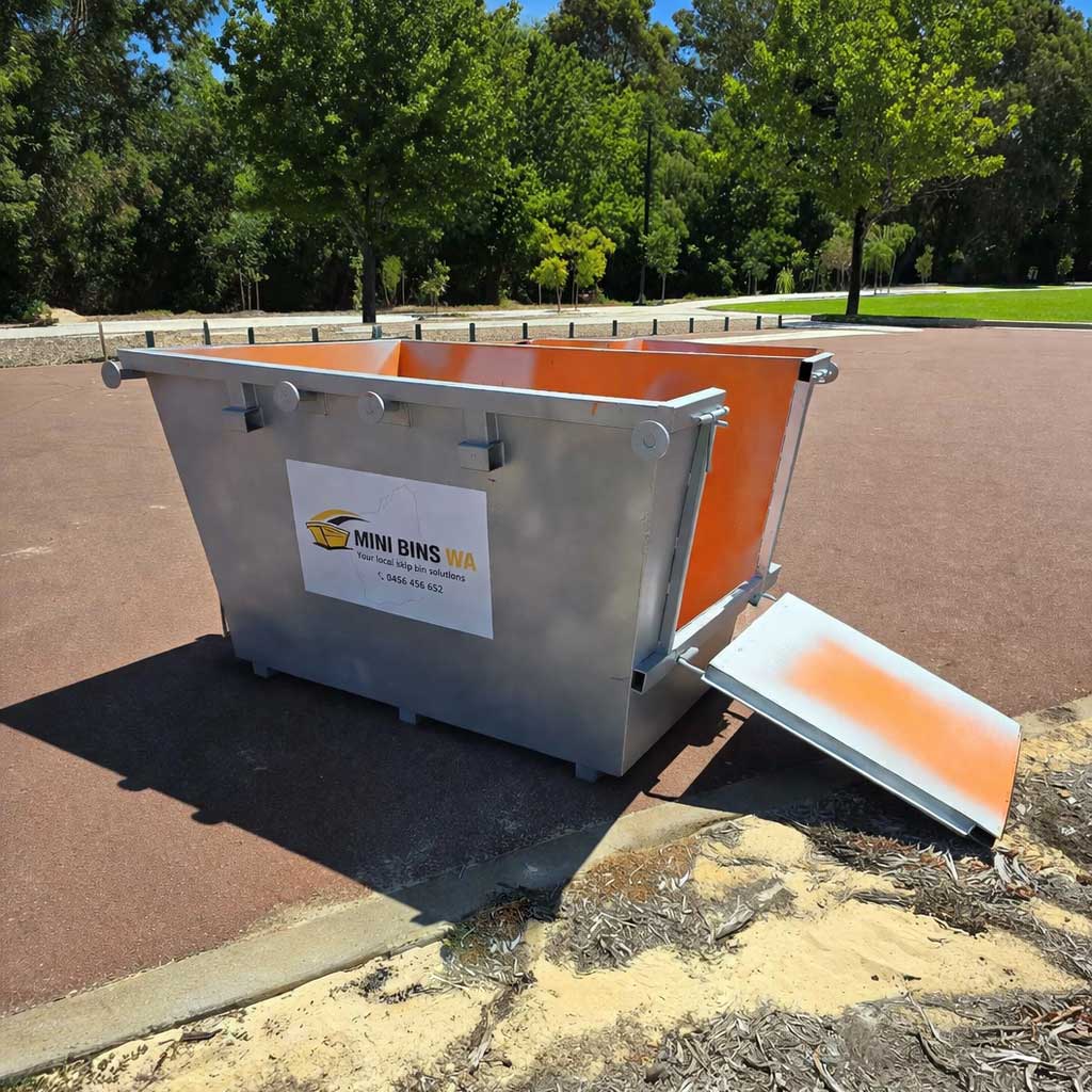 Our large size mini skip bin is based on our small standard bin but with high sides for the extra capacity. Because we deliver with small trucks we have to put limits on the weight of our bins so this bin is only for bulky waste or clean green waste.